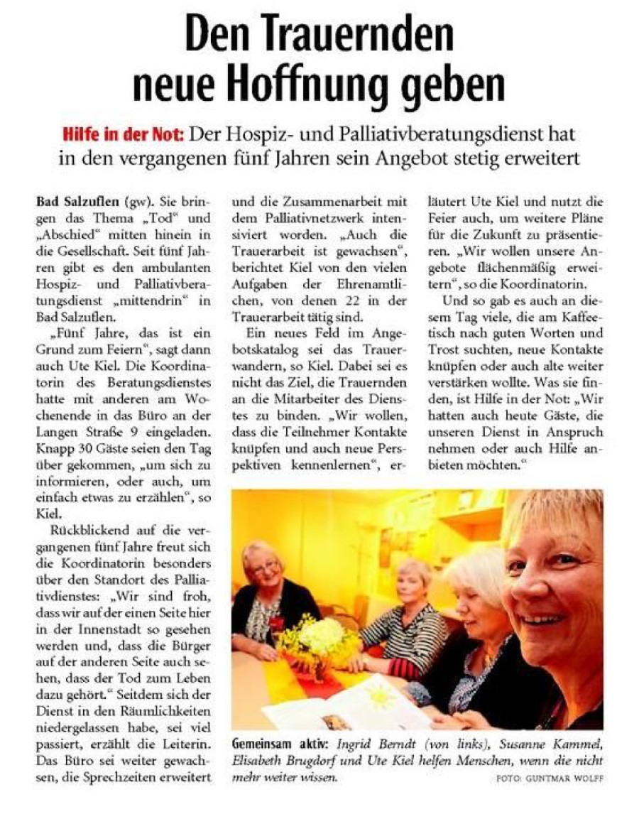 Die Geschäftsstelle des Ambulante Hospiz- und Palliativ-Beratungsdienstes Lippe e. V in Bad Salzuflen feiert ihr 5jähriges Bestehen.